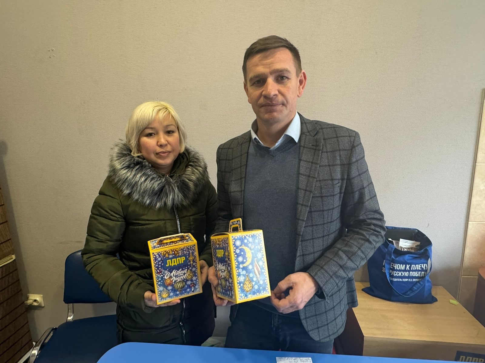 Партийцы традиционно подготовили для юных земляков сладкие призы