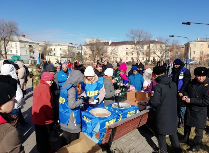 Эксклюзивные сувениры, угощение солдатской кашей и горячим чаем, концертные номера — такую программу подготовили партийцы для астраханцев.