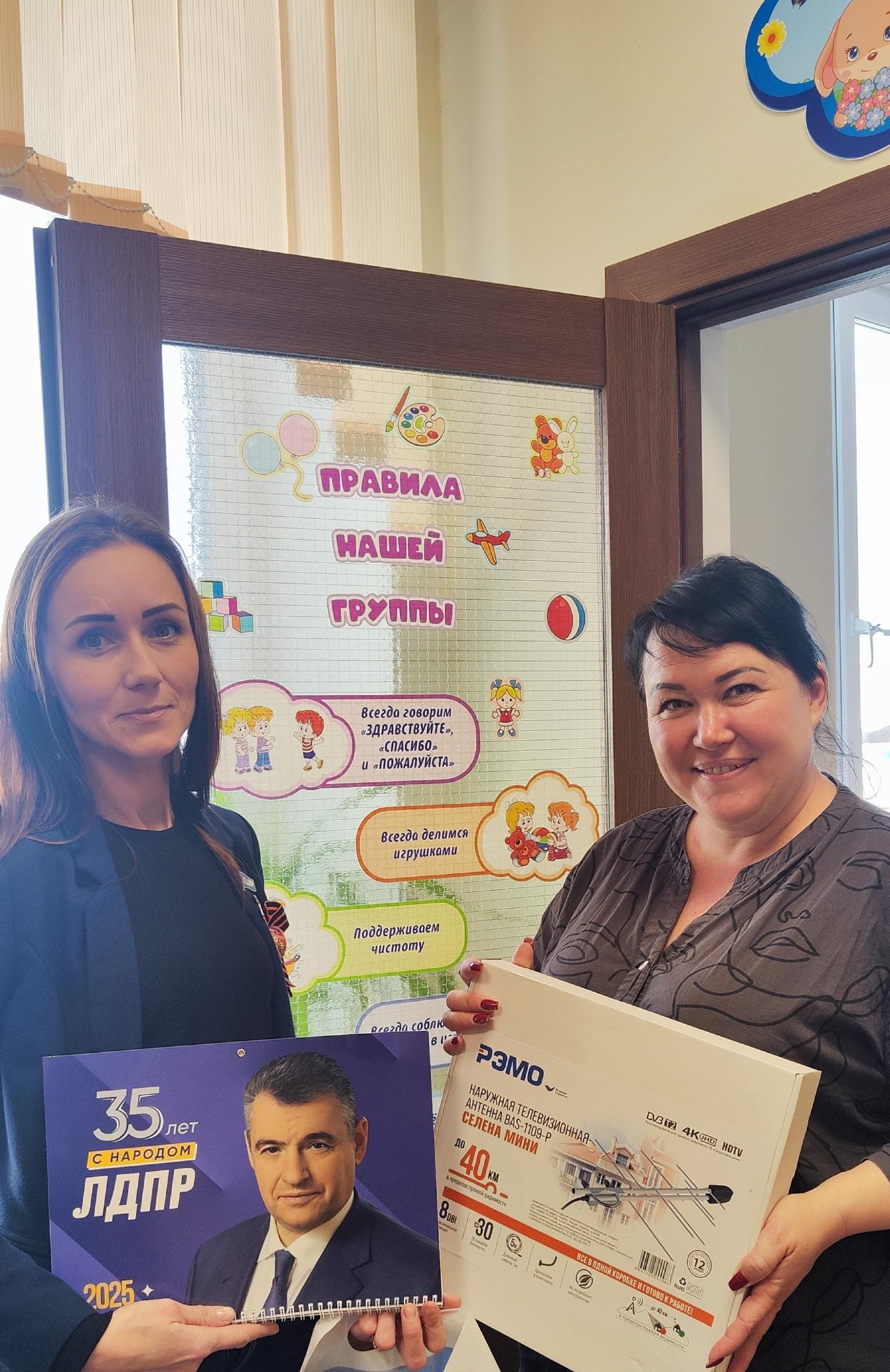 Координатор Харабалинского местного отделения ЛДПР Марина Коноплева подарила ясельной группе антенну, а детям – хорошее настроение, которое задается с утра.