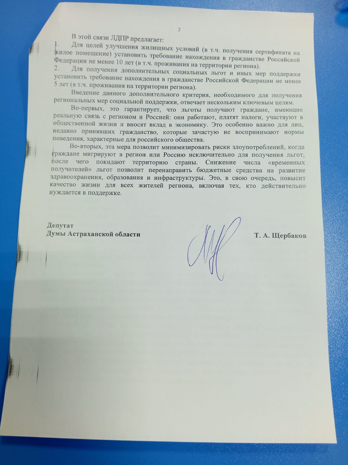 Подобные случаи, настаивает руководитель астраханского реготделения партии, подрывают доверие к системе распределения социальных благ и усиливают социальную напряженность. Поэтому в ЛДПР считают, что право на улучшение жилищных условий должно предоставляться мигрантам только через 10 лет с момента получения гражданства и проживания на территории Астраханской области. А для льгот и других мер соцподдержки этот срок должен составлять пять лет.