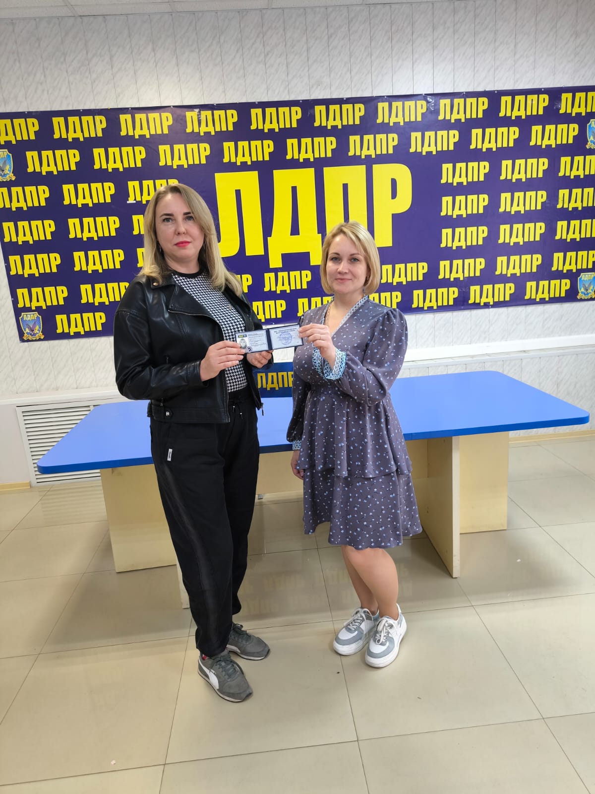 Первый заместитель руководителя Астраханского регионального отделения ЛДПР Алена Емельянова вручила партбилет новому члену