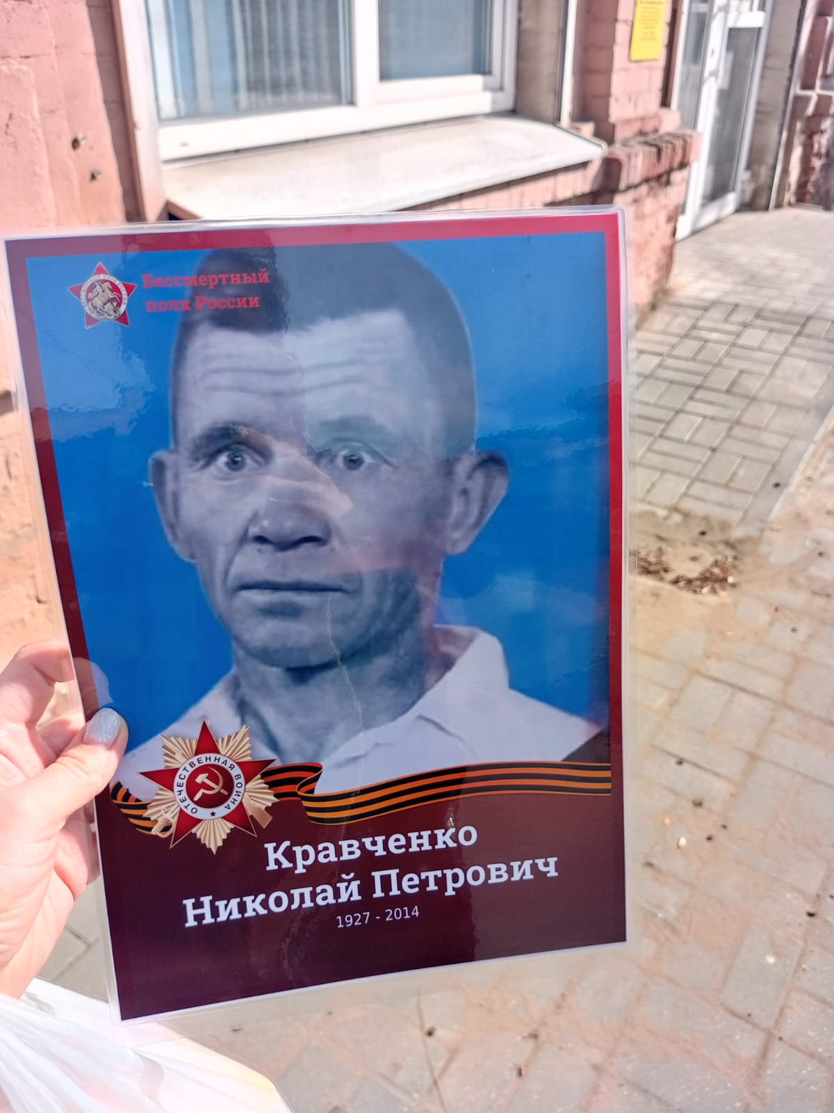 "Когда просвистели первые пули, моему дедушке – Кравченко Николаю Петровичу только исполнилось 14 лет. Всех мужчин забрали на фронт, в селе, Камызякского района, где он жил, остались только старики, женщины и дети. Всем досталось сполна: они трудились на полях: пахали и сеяли, косили сено, пасли скот. Сами жили впроголодь, ели лепешки из лебеды и кашу из чилима. У дедушки была большая семья. Его отца репрессировали и забрали на фронт в первые дни войны. Дед остался за старшего, школу пришлось бросить, надо было помогать матери, кормить сестер. Вместе со сверстниками он пошел работать в колхоз. Дети трудились наравне со взрослыми, от зари до зари. Дедушка был погонщиком лошадей. По его рассказам, мать, моя прабабушка, будила его до восхода солнца и при этом заботливо надевала на его ноги лапти, чтобы у сына была лишняя минутка на сон. Дед вместе с другими мальчишками мечтал попасть на фронт. В военкомате ему отказали. Тогда он вместе с другом сбежал из дома. На попутках пацаны добрались до Астрахани, запрыгнули в военный эшелон. Но патруль снял их с поезда и вернул домой. В ноябре 1944 года деда всё же призвали в армию. Направили в Нальчик, в минометный батальон. В конце мая 1945 года деда отправили в Иран. Служил в пехоте, в 9-й стрелковой роте 54-й гвардейской дивизии – автоматчиком. Домой вернулся только в 1951 году.