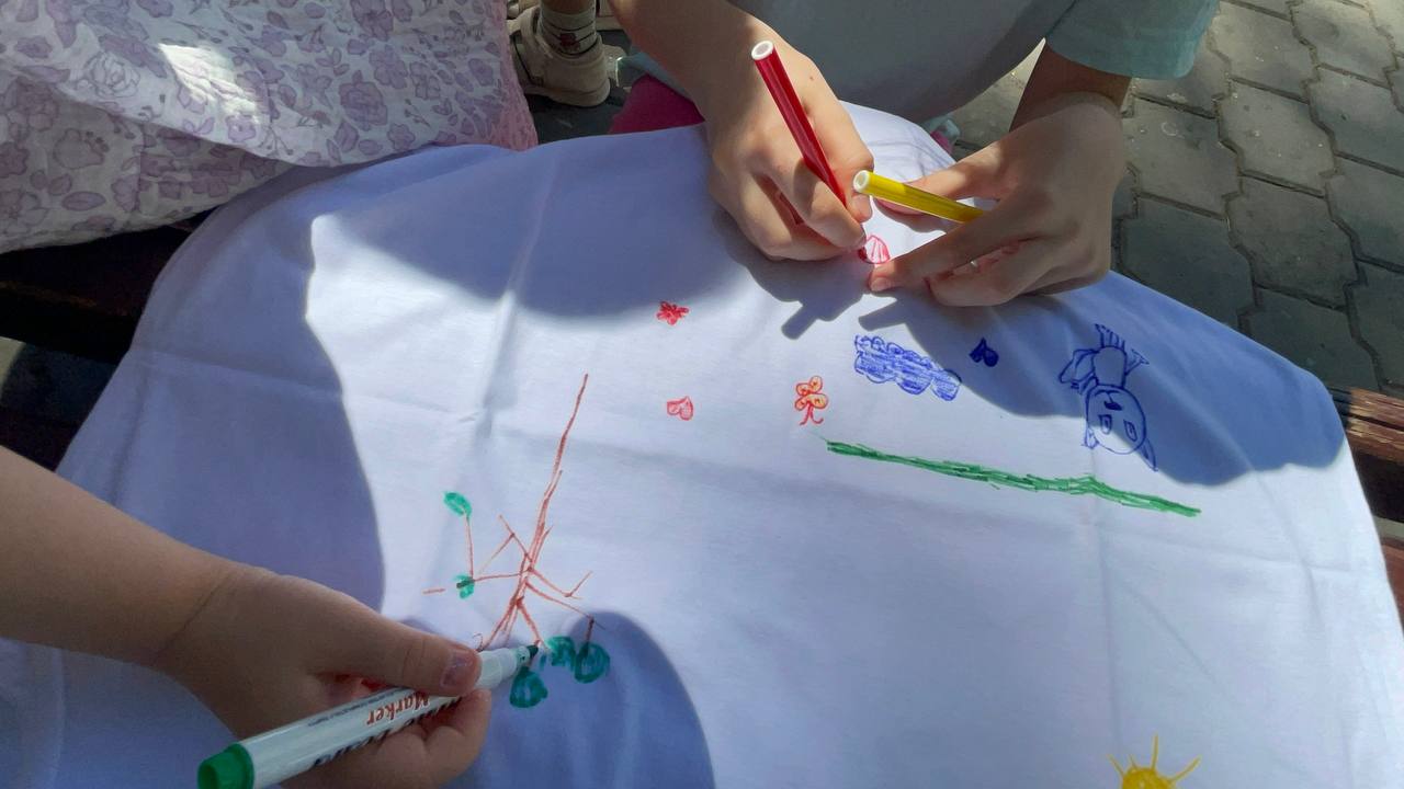 В Братском саду к празднованию Дня защиты детей подключилась другая группа активистов партии. Первый заместитель руководителя Астраханского реготделения ЛДПР Алена Емельянова организовала для ребят кастомизацию футболок с партийной символикой.
