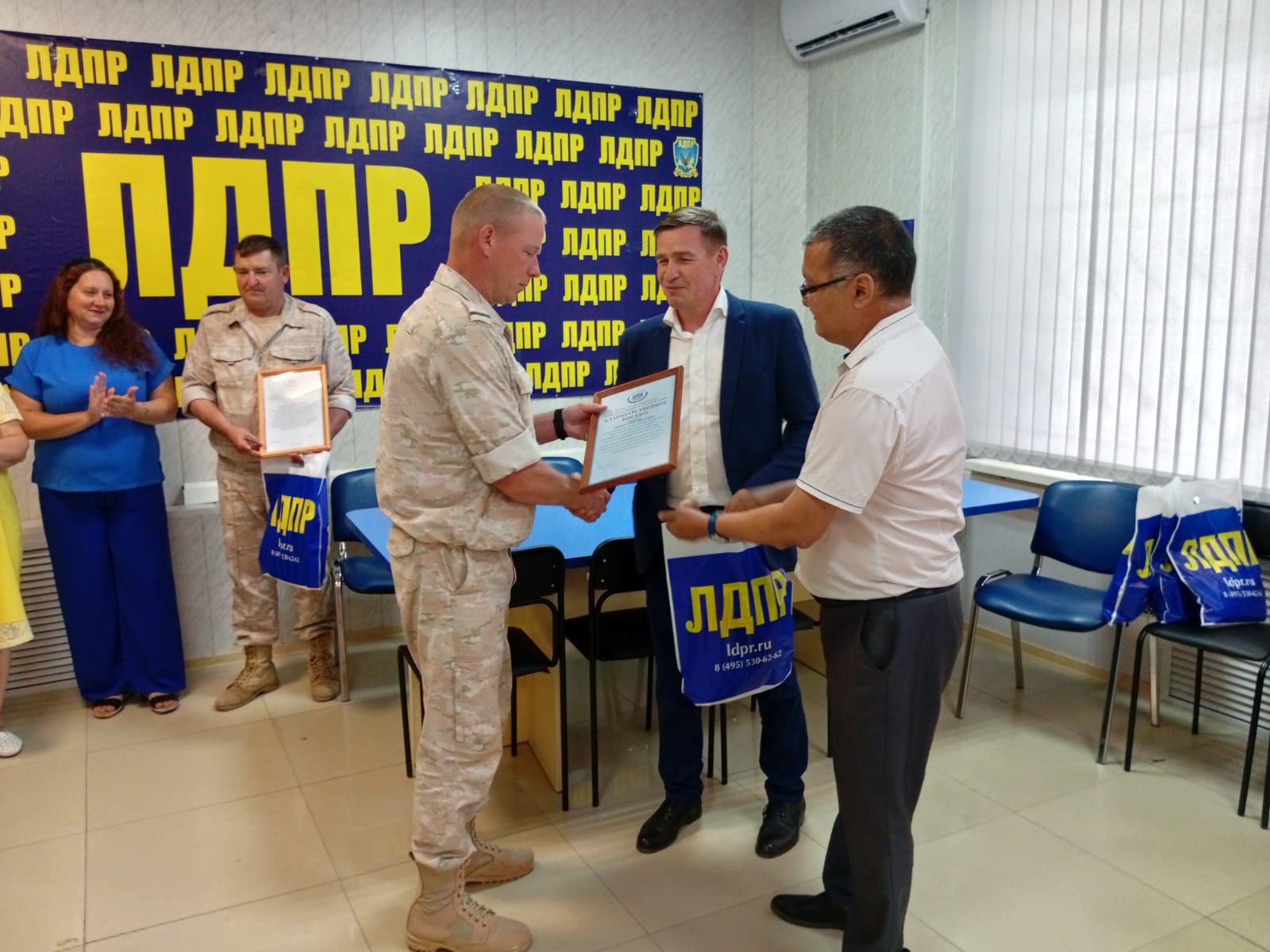 Сегодня, 1 июля, в офисе Астраханского реготделения ЛДПР чествовали ветеранов боевых действий и членов их семей. Бойцам вручили благодарственные письма, подарки и пригласили на чаепитие.