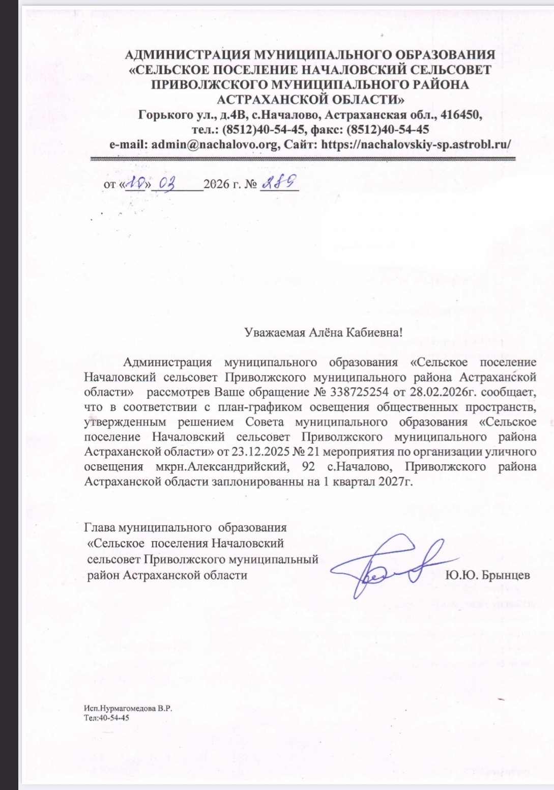 В микрорайоне Александрийский, 92 села Началово Приволжского района в первом квартале 2027 года появится освещение. Об этом стало известно из официального ответа в адрес координатора Приволжского местного отделения ЛДПР Алены Даниловой.