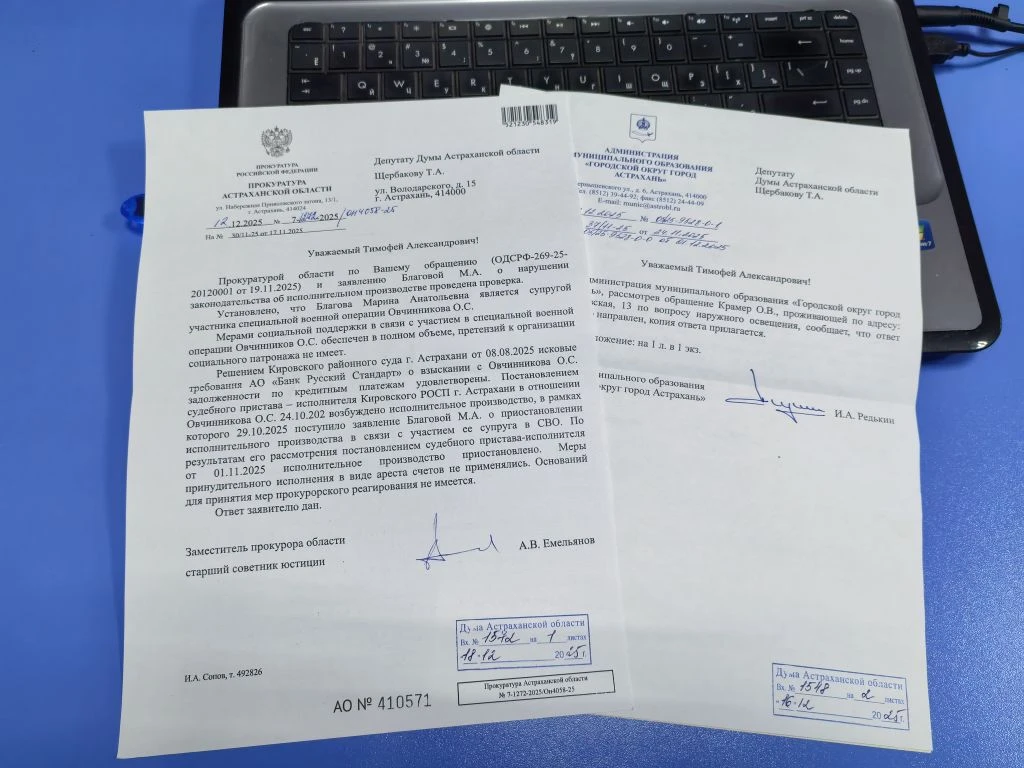 Кировский райсуд удовлетворил исковые требования одного из банков о взыскании с гражданина О.О. задолженности по кредитным платежам. Постановлением судебного пристава-исполнителя Кировского РОСП г. Астрахани в отношении О.О. возбуждено исполнительное производство. Однако супруга О.О. обратилась в реготделение ЛДПР, а партийцы — сделали депутатский запрос в прокуратуру, ведь О.О. в настоящее время — участник СВО.