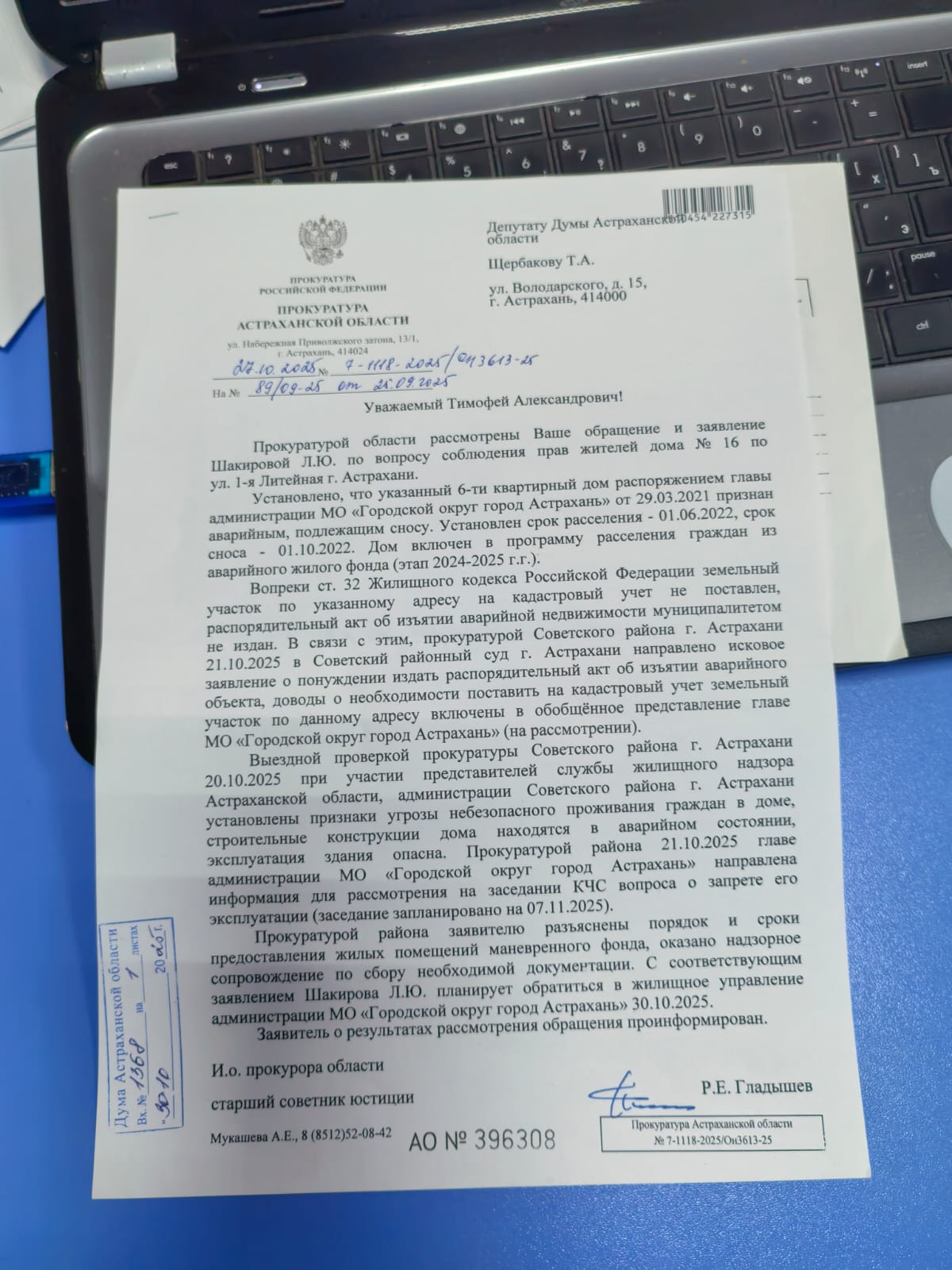 После обращения ЛДПР в региональную прокуратуру главе Астрахани внесено обобщенное представление. Об этом надзорное ведомство уведомило депутата Думы Астраханской области от ЛДПР в ответном письме.