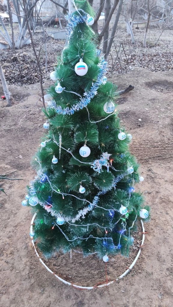 Координатор Харабалинского местного отделения ЛДПР, волонтер Марина Коноплева показала свою елку. Пушистую красавицу установила в своем дворе в селе Сасыколи.